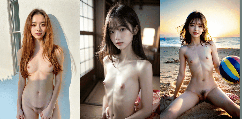 貧乳のAI美女をまとめました。比較的若めなロリ系の美少女の小ぶりなおっぱいに、キメの細かい若い体がポイントです。