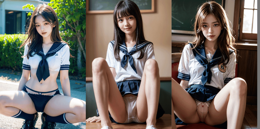 セーラー服の女子高生風AI美少女のパンチラ画像です。JKのスカートの中は夢がたくさん詰まってます。セクシーなパンツから、JKらしい可愛いパンツまでさまざまなパンチラが楽しめます。