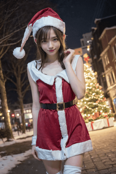 クリスマスの街で、おっぱい丸出しのエッチなサンタさん【AIグラビアヌード】