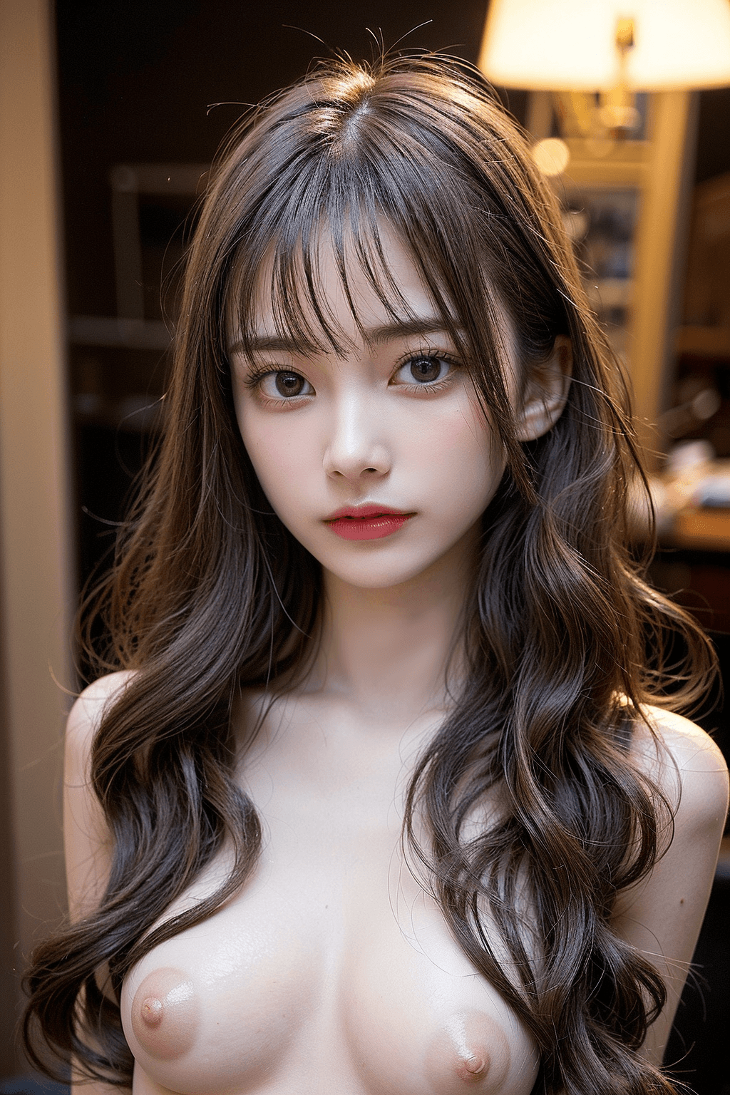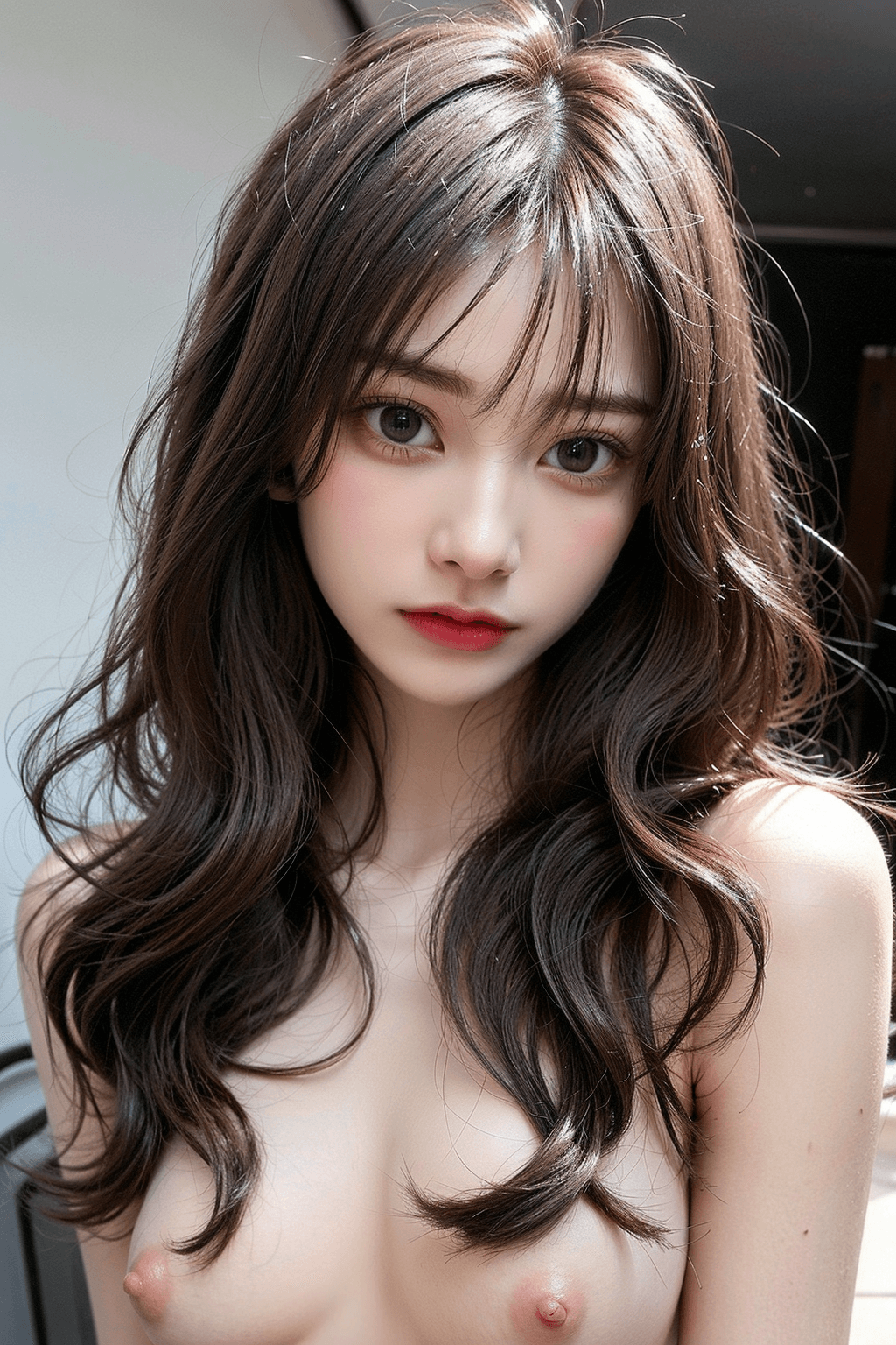 黒髪ロングヘアなAI美女のヌード画像