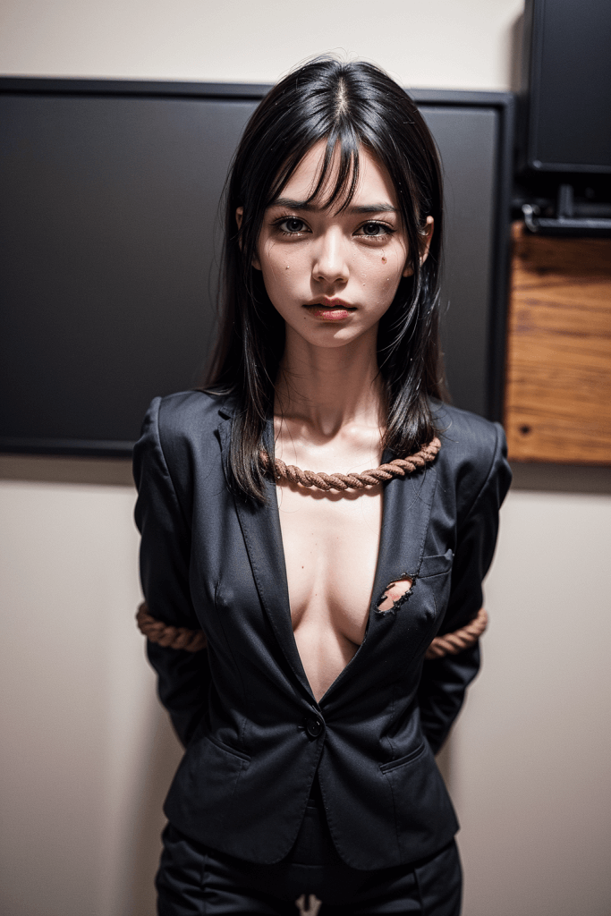 スーツを破かれて、おっぱいや、まんこ丸出しの状態で縄で縛られる羞恥SMプレイのエロ画像になっています。綺麗な顔に、綺麗な髪、細身でモデルのようなスタイルの美人OLたちが霰もない姿にされて立たされたり、まんこにちんこを挿入されている姿に興奮すること間違いなしです。