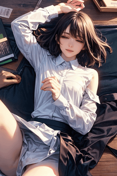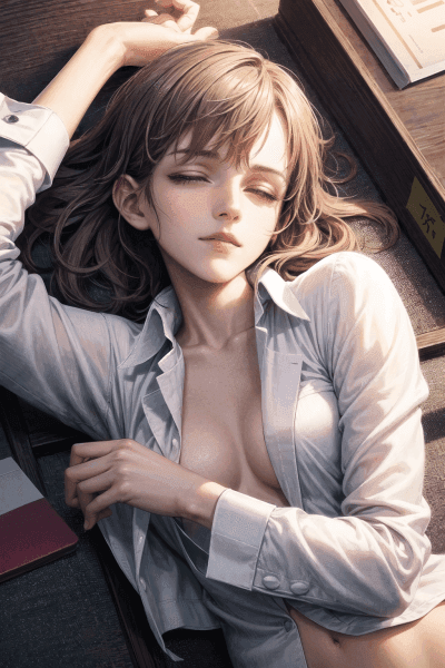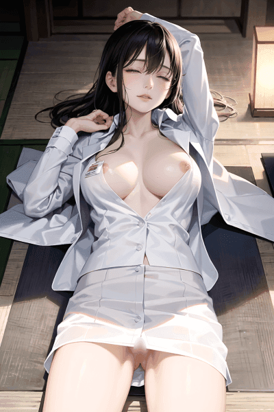 こちらもAIで生成した3次元のリアルなエロ画像です。使えれて帰ってきたOLが、スーツを脱ぎながら寝てしまったエロ画像です。スーツ姿の女性は興奮度が上がりますね。脱ぎかけのシャツからおっぱいが見えていたり、パンツを脱いでマンコが丸見えのOLを掲載しています。無防備な姿のエッチなOLを見えていると罪悪感すら感じます。