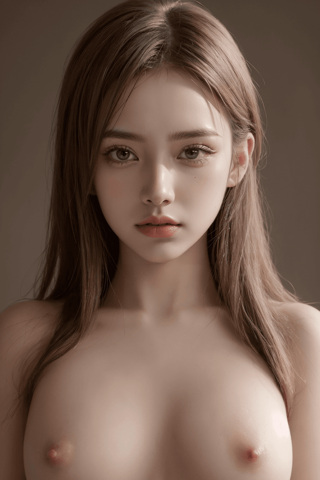 透明感のある茶髪美女のオールヌード画像【AIグラビアヌード】