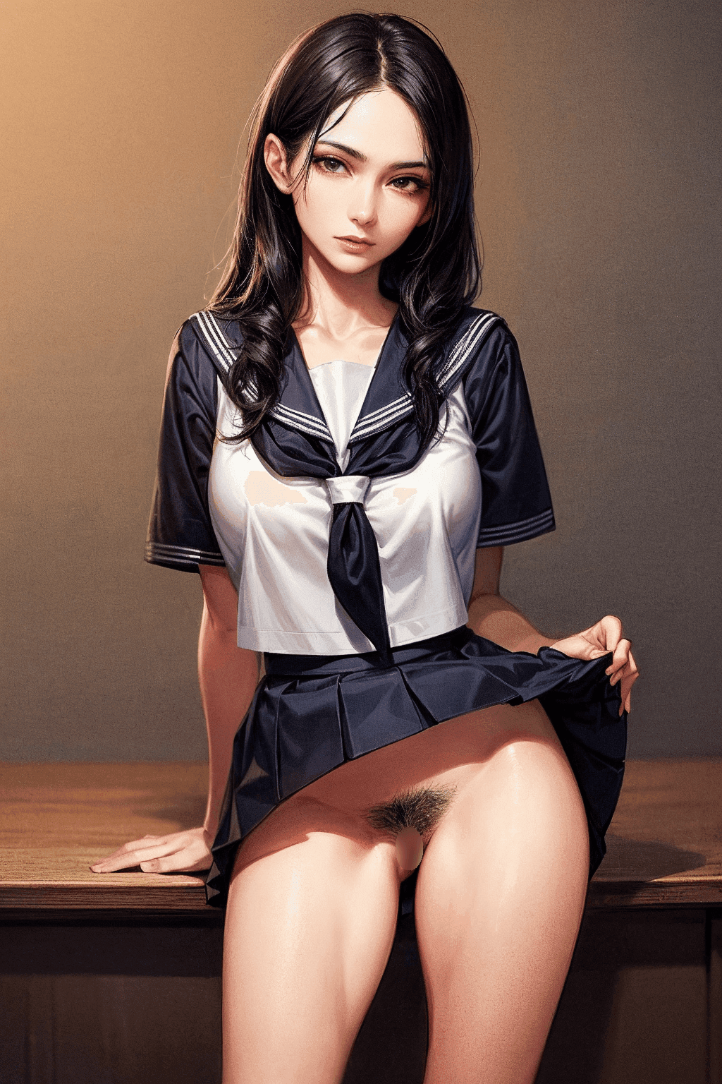 陰毛がしっかり生えた2次元アニメの美少女【AIグラビアヌード】