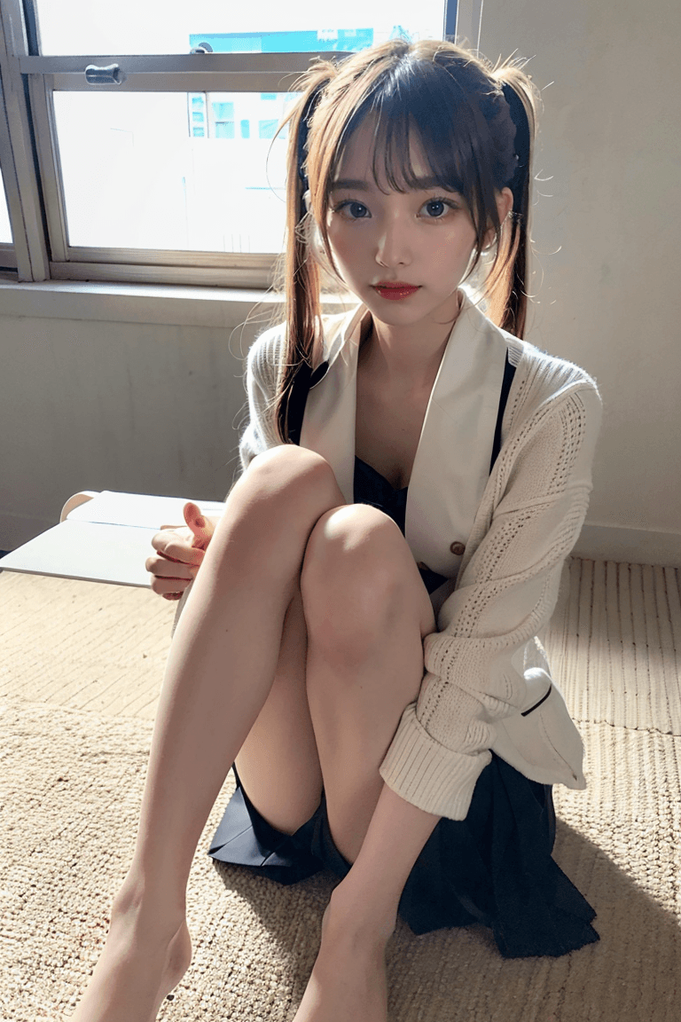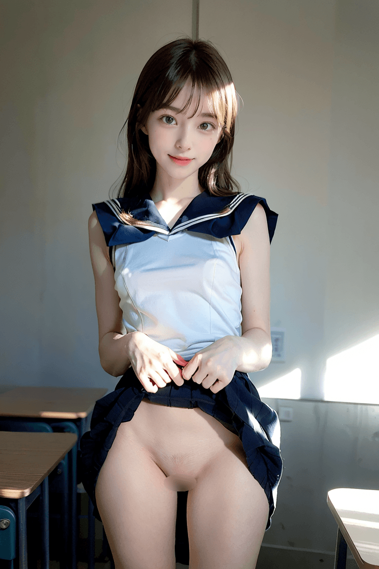 JK風美女がパンツを脱いでマン毛を見せる【AIグラビアヌード】